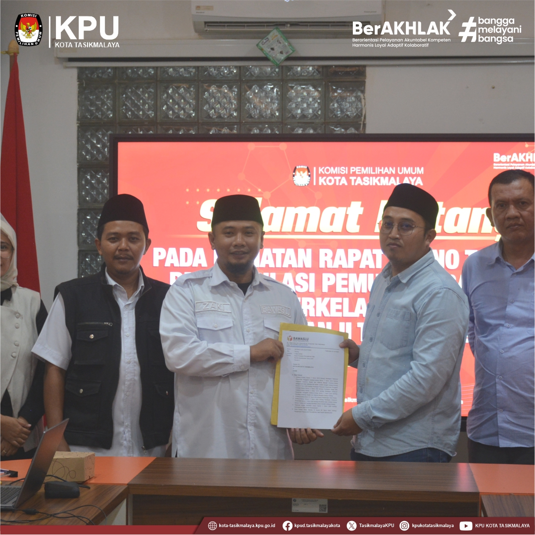 #Temanpemilih, 2 Juli 2025 - KPU Kota Tasikmalaya telah melaksanakan Rapat Pleno Terbuka Rekapitulasi Pemutakhiran Data Pemilih Berkelanjutan yang dihadiri oleh Ketua, Anggota dan staf Bawaslu Kota Tasikmalaya turut hadir juga para undangan stakeholder lainnya.