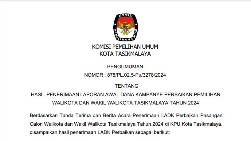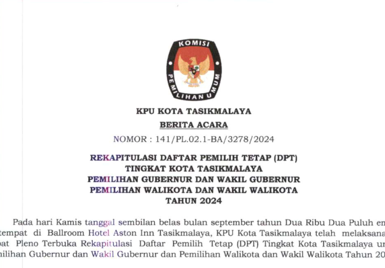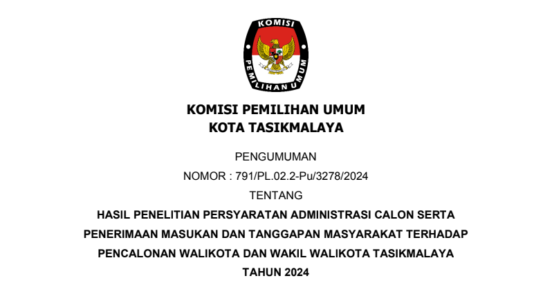 HASIL PENELITIAN PERSYARATAN ADMINISTRASI CALON SERTA PENERIMAAN MASUKAN DAN TANGGAPAN MASYARAKAT TERHADAP PENCALONAN WALIKOTA DAN WAKIL WALIKOTA TASIKMALAYA TAHUN 2024